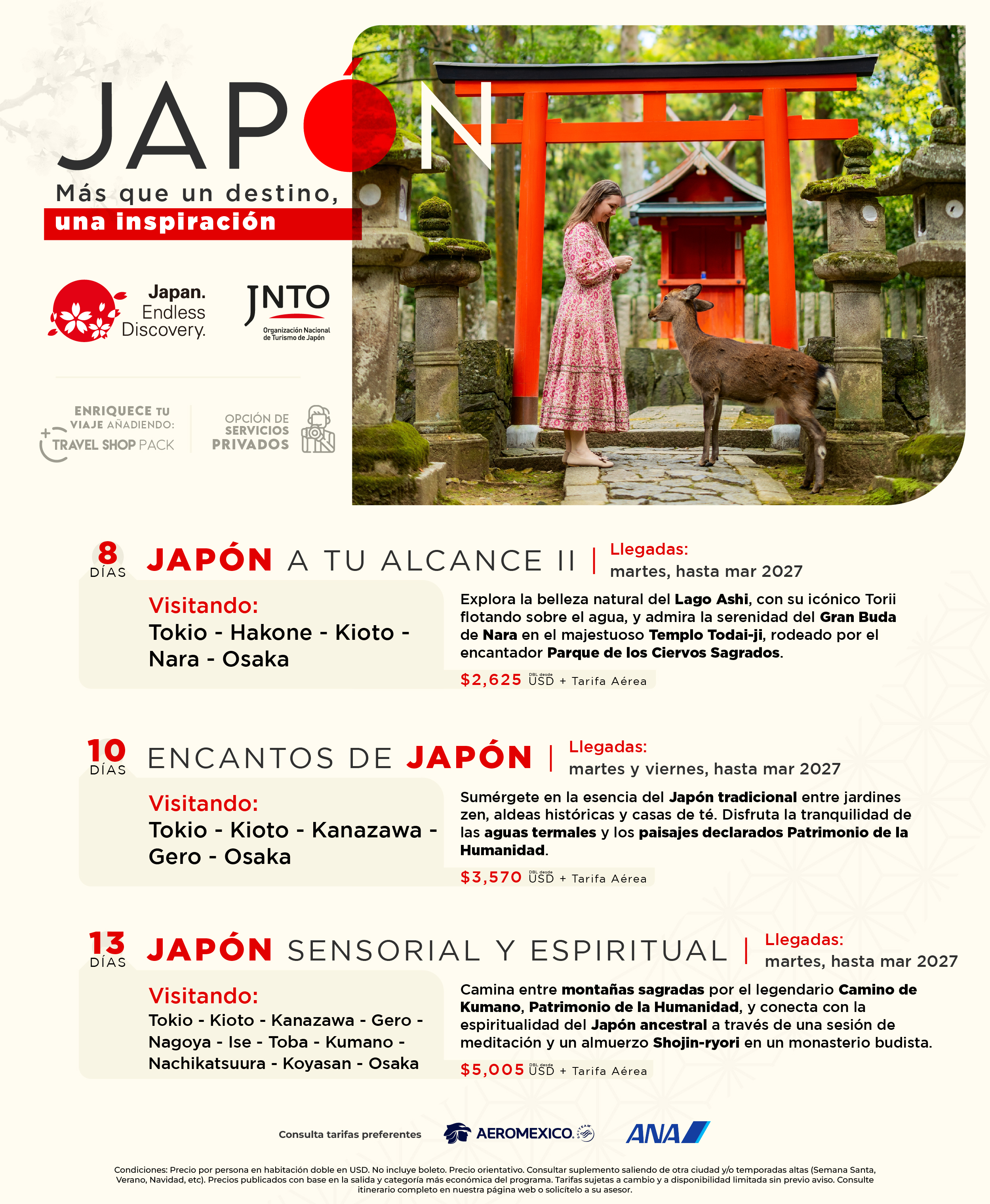 En nuestra página de vacaciones encontrarás, de forma clara y detallada, las mejores promociones, ofertas exclusivas y experiencias únicas para viajar al mejor precio. Todo lo que necesitas para planear, comparar y reservar tus próximas vacaciones en un solo lugar.